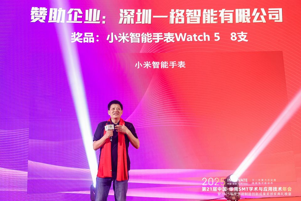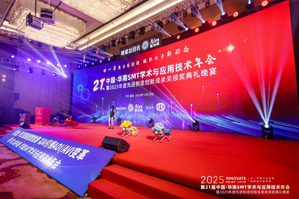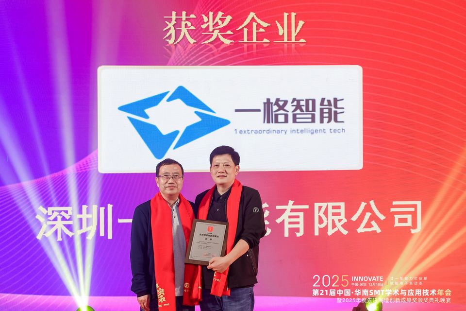 12月18日,2025中国·华南SMT学术与应用技术年会暨2025年度先进制造创新成果奖颁奖典礼晚宴在深圳圆满举行,深圳一格智能有限公司作为核心企业受邀参加本次年会。并且凭借一格智能自主研发的Delta机器人柔性供料平台,一举加冕2025年度先进制造创新成果奖。作为电子制造与半导体领域极具影响力的行业盛会,本次年会汇聚了来自全国各地的专家学者、行业精英及优秀企业代表,共同探讨SMT与先进封装技术的发展趋势与创新实践。