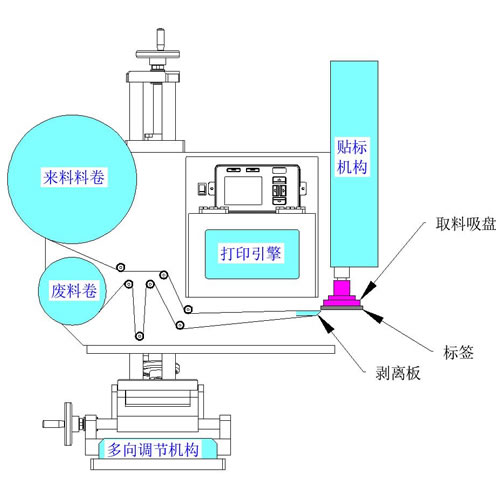 4. 标签剥离完成后,贴标机构吸盘吸取标签贴附。