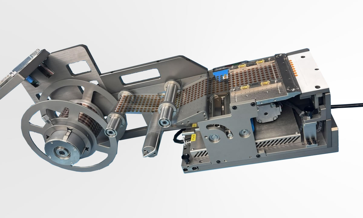 Application: The front-push roll feeder is suitable for automatically peeling and feeding roll materials such as paper labels, protective films, foams, double-sided tapes, conductive tapes, copper foils, steel sheets, and reinforcement plates.