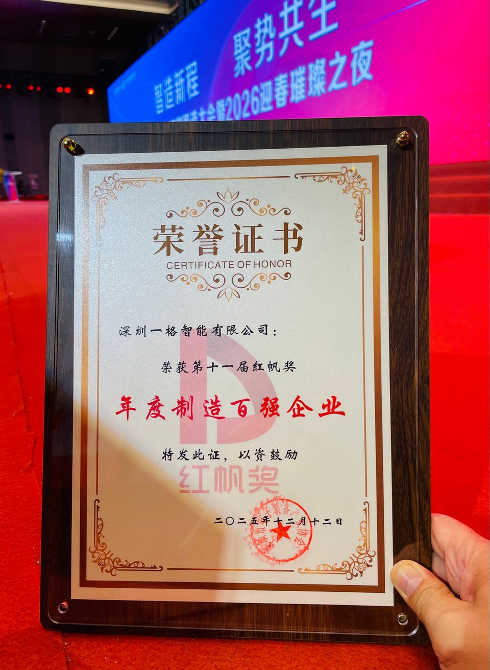 在备受瞩目的“红帆奖”评选中,深圳一格智能有限公司凭借在智能供料领域的持续深耕与卓越表现,荣获 “年度制造百强企业” 权威认定。